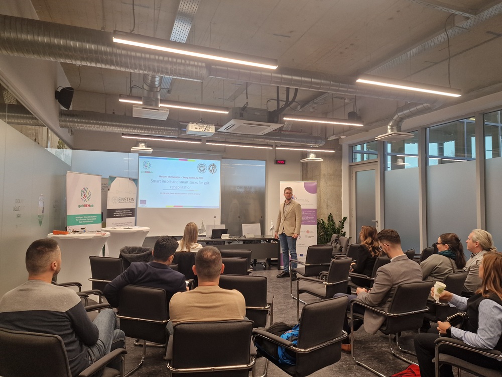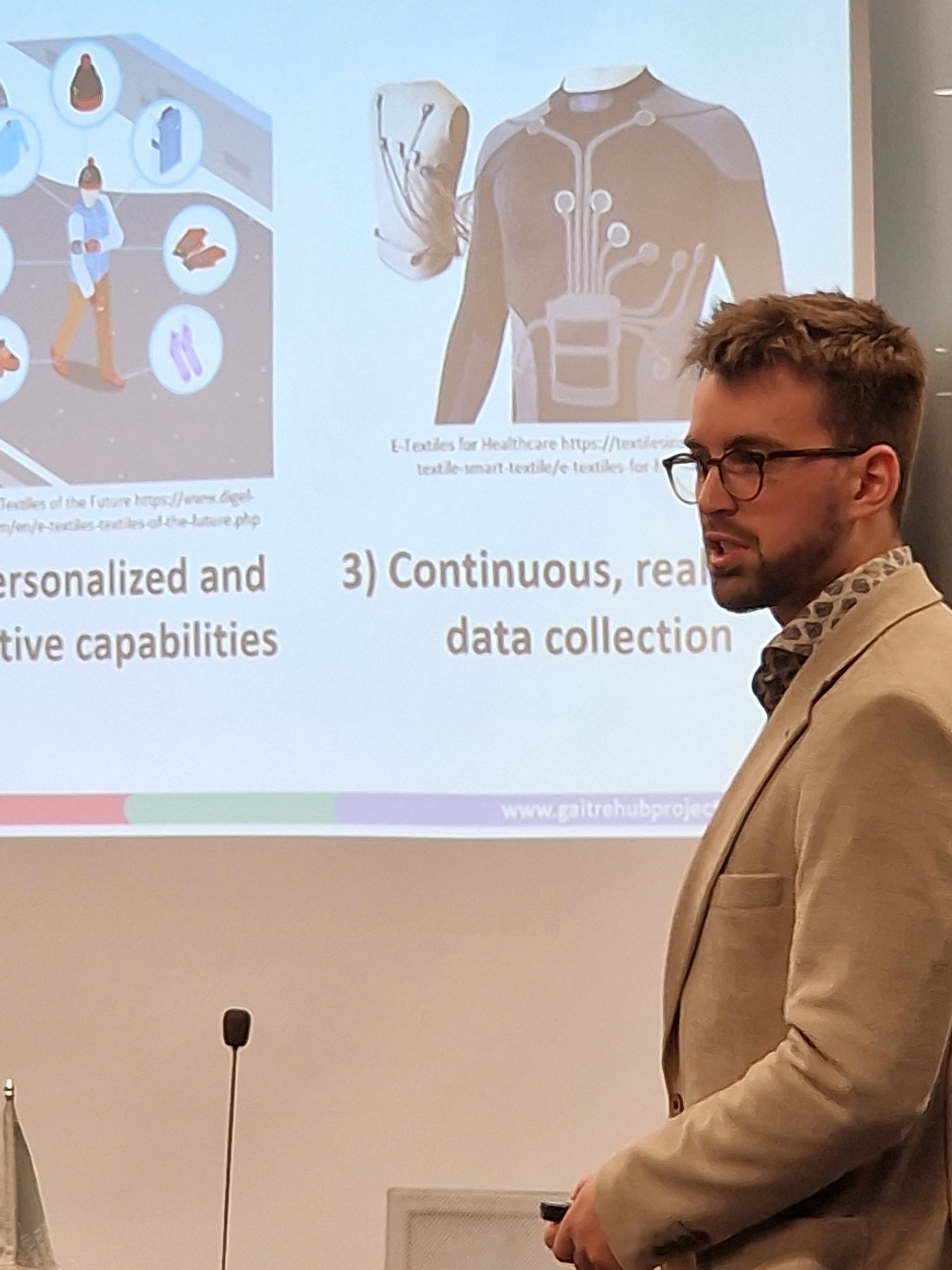 He also highlighted ongoing collaboration activities, including project secondments, and outlined the future development plans of the GAITREHUB project, emphasizing its potential impact on wearable health technologies and personalized rehabilitation.