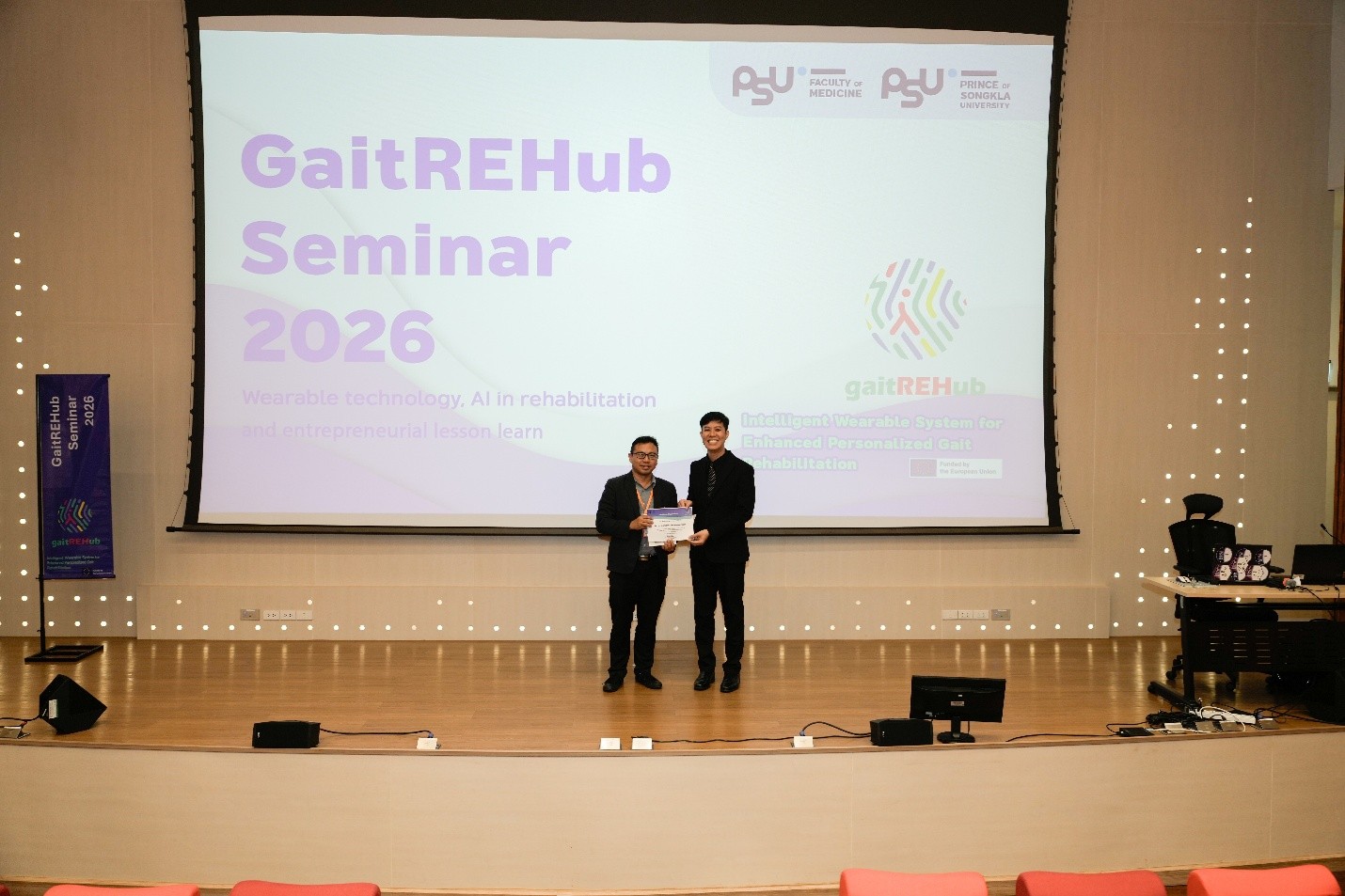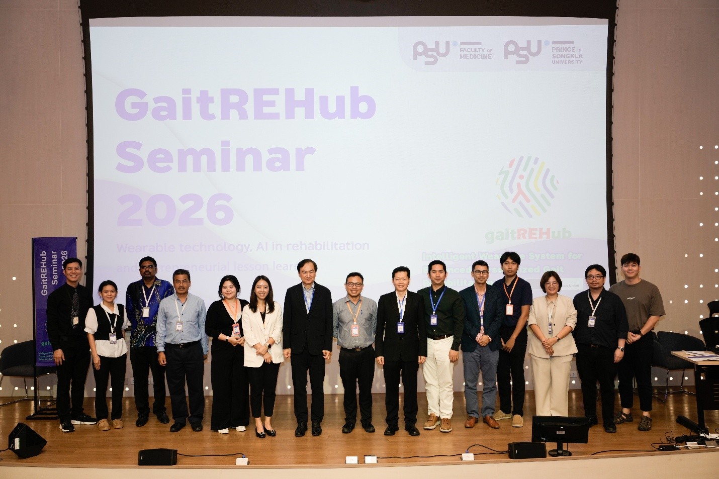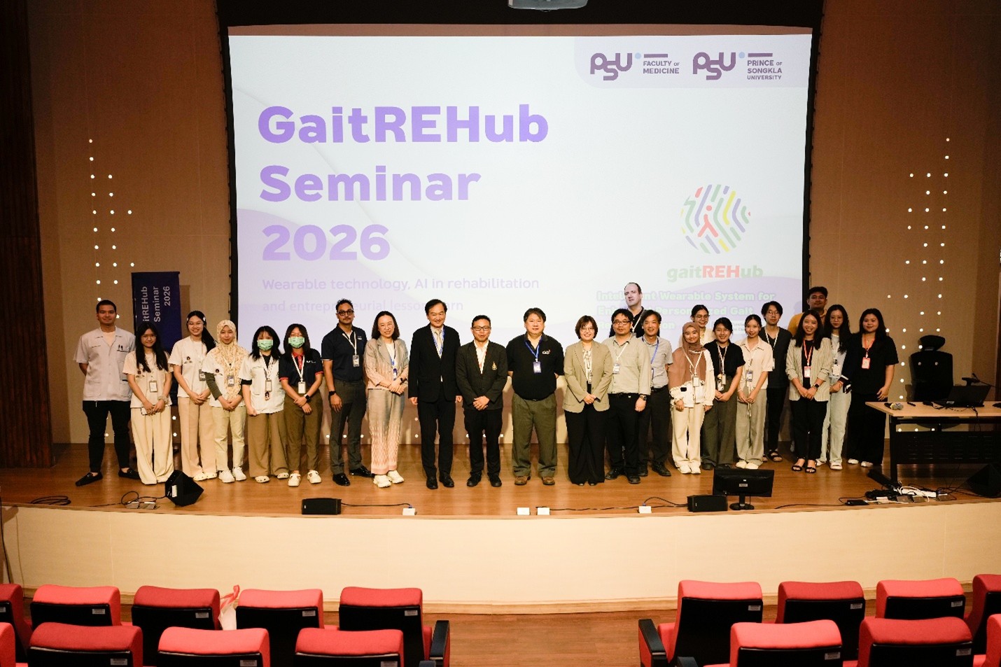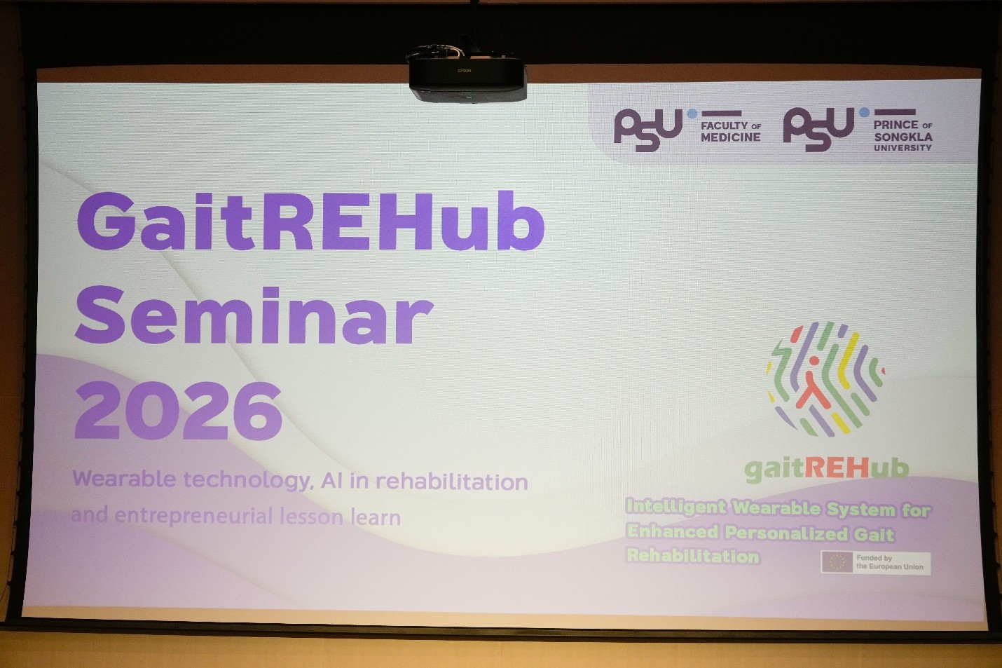 As part of the EU-funded GaitREHub project, the event highlights cutting-edge research on wearable technologies, personalized rehabilitation, and data-driven approaches to improve mobility outcomes for patients with neurological impairments. Participants engage in discussions, presentations, and networking opportunities that bridge academia, industry, and clinical practice. The seminar also emphasizes the translation of research into real-world applications, including startup development and technology commercialization. With both onsite and online participation, the event promotes accessibility and global collaboration, reinforcing Prince of Songkla University’s role as a regional hub for biomedical engineering and rehabilitation innovation. Overall, the GaitREHub Seminar 2026 serves as a platform to accelerate the development of intelligent rehabilitation technologies and foster international partnerships toward improving patient care and quality of life.